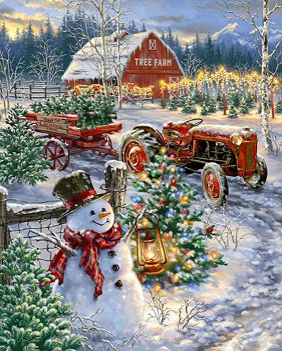 Diamond Paint - Snowman samlar julgranar på traktor 40x60 cm
