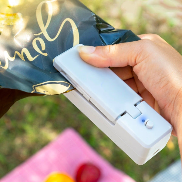 Magnetisk uppladdningsbar påsförseglare med skärare