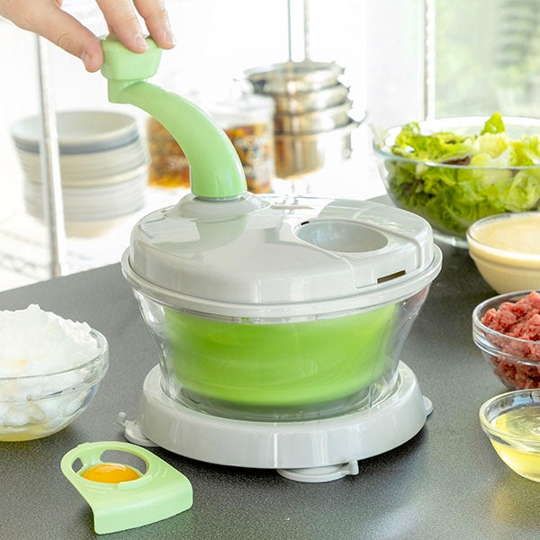 4-i-1 Manuell slunga, hackare och mixer med tillbehör och recept