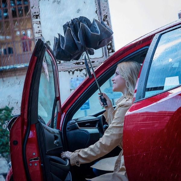 Hopfällbar paraply med omvänd stängning och LED belysning